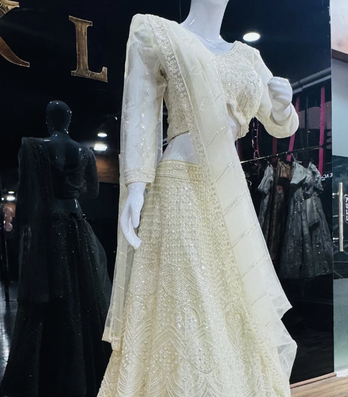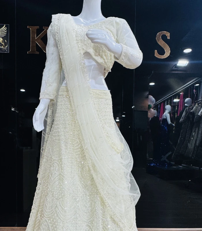 An Anarkali Lehenga is a timeless fusion of traditional artistry and contemporary style. Designed with a structured Anarkali bodice that accentuates the upper silhouette, it seamlessly expands into a voluminous lehenga skirt that adds drama and movement to every step. The ensemble often features hand-embroidered motifs, zari work, sequins, or delicate thread patterns that elevate its regal appeal.