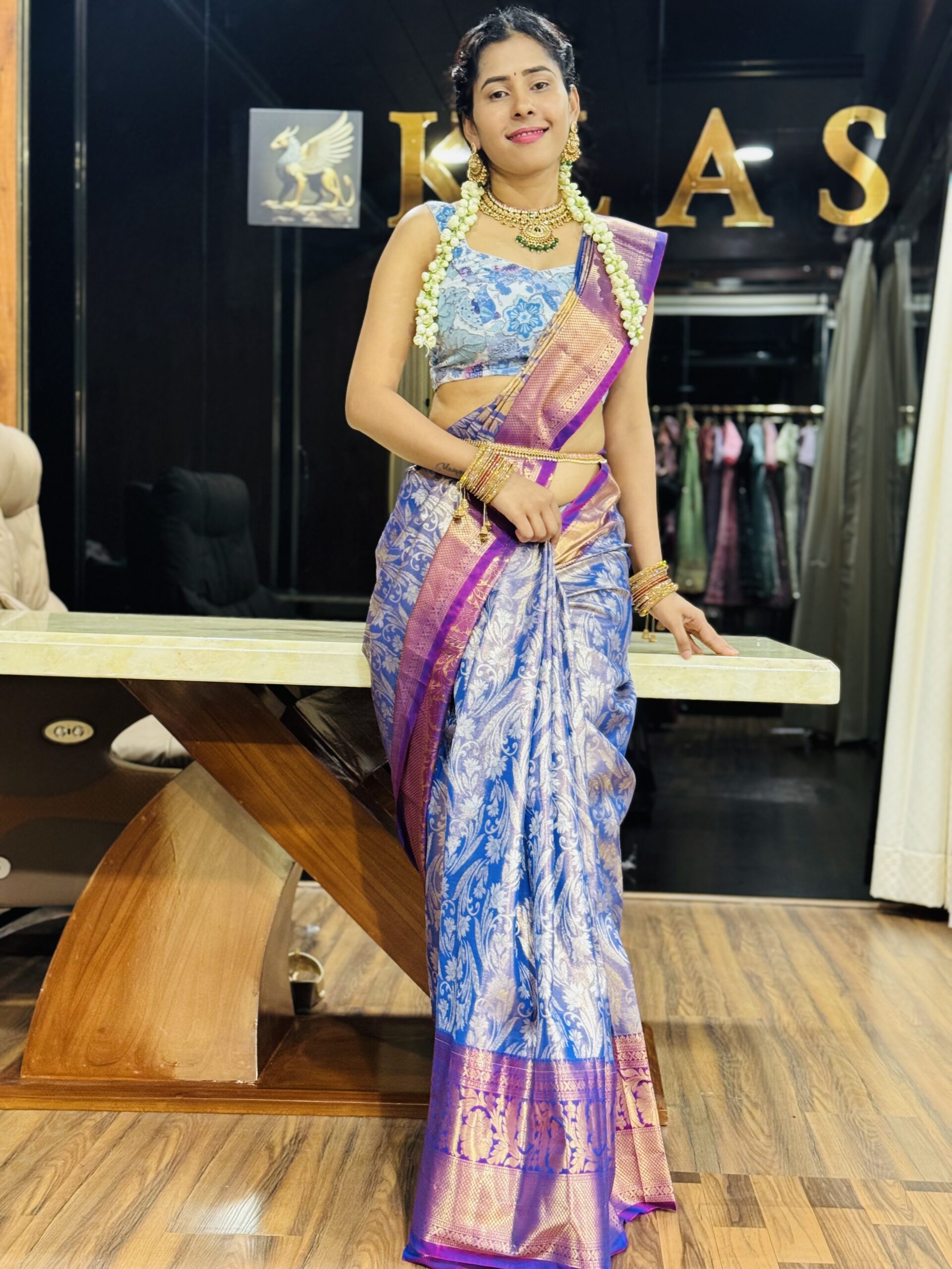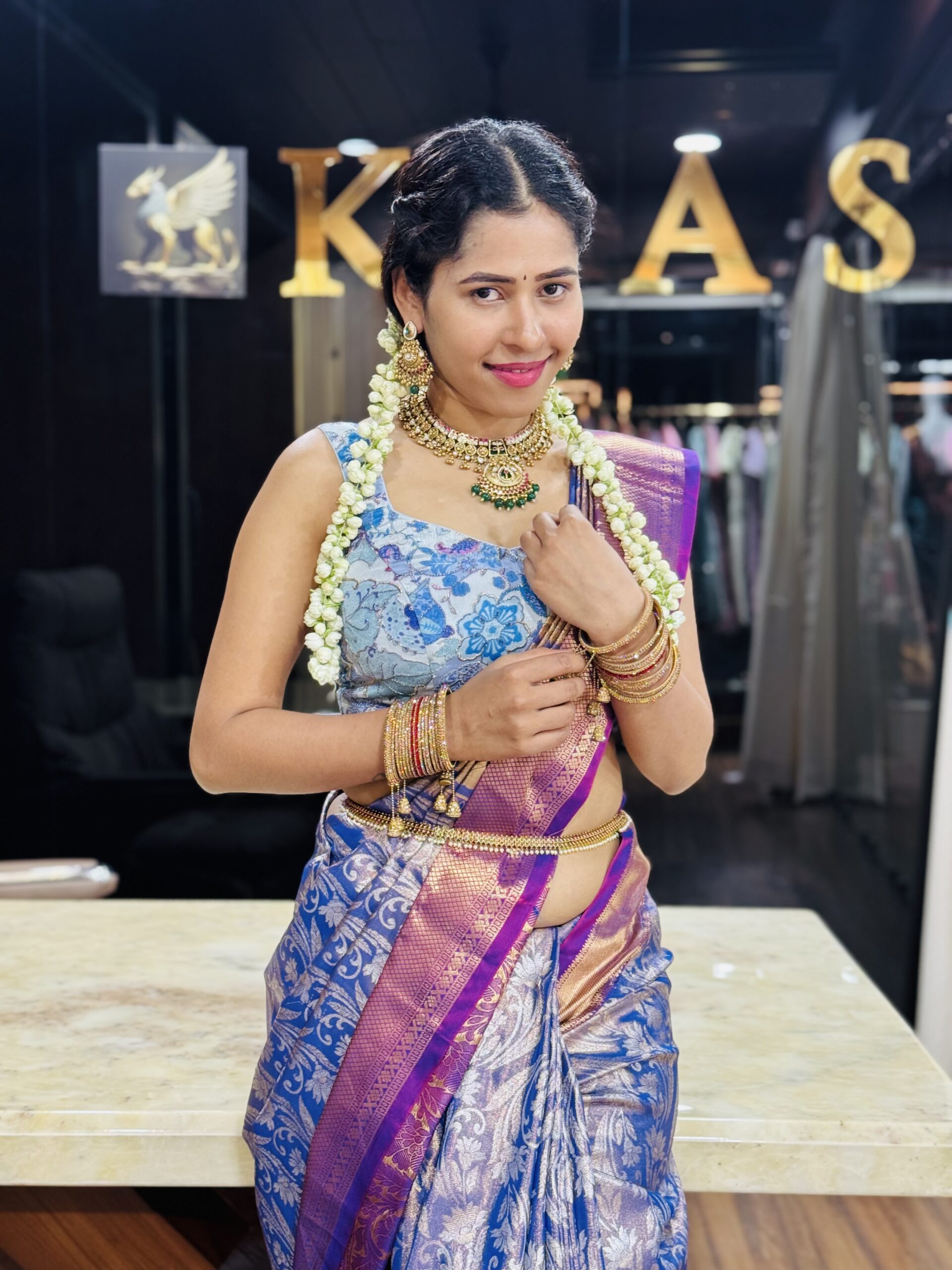 Woven with unmatched precision by skilled artisans, this saree features rich silk texture and authentic zari work that radiates timeless elegance. The intricate borders and grand pallu are not just designs, they are a reflection of South India’s royal craftsmanship.