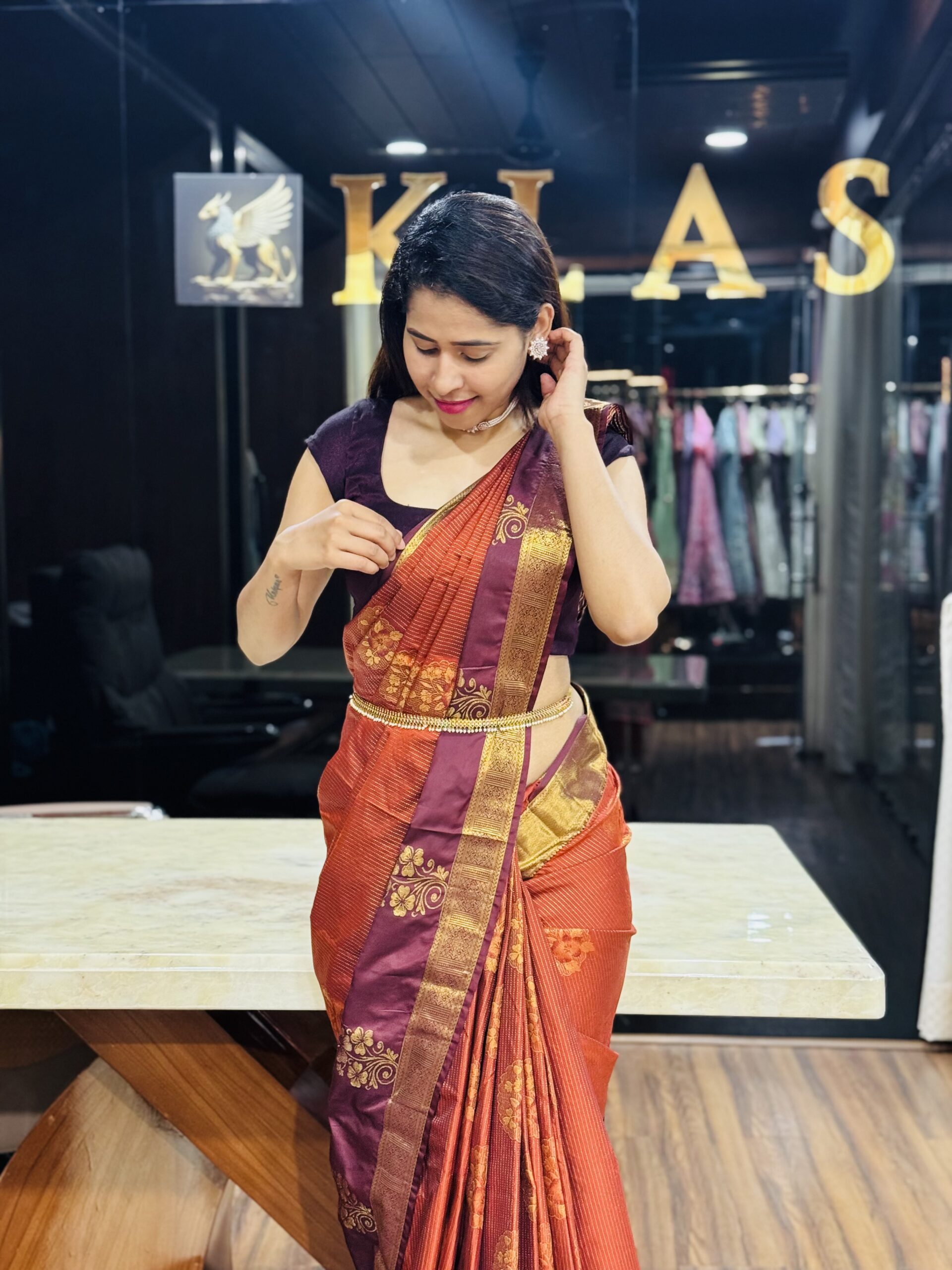 Lightweight pure Kanchipuram silk saree that drapes like a dream.