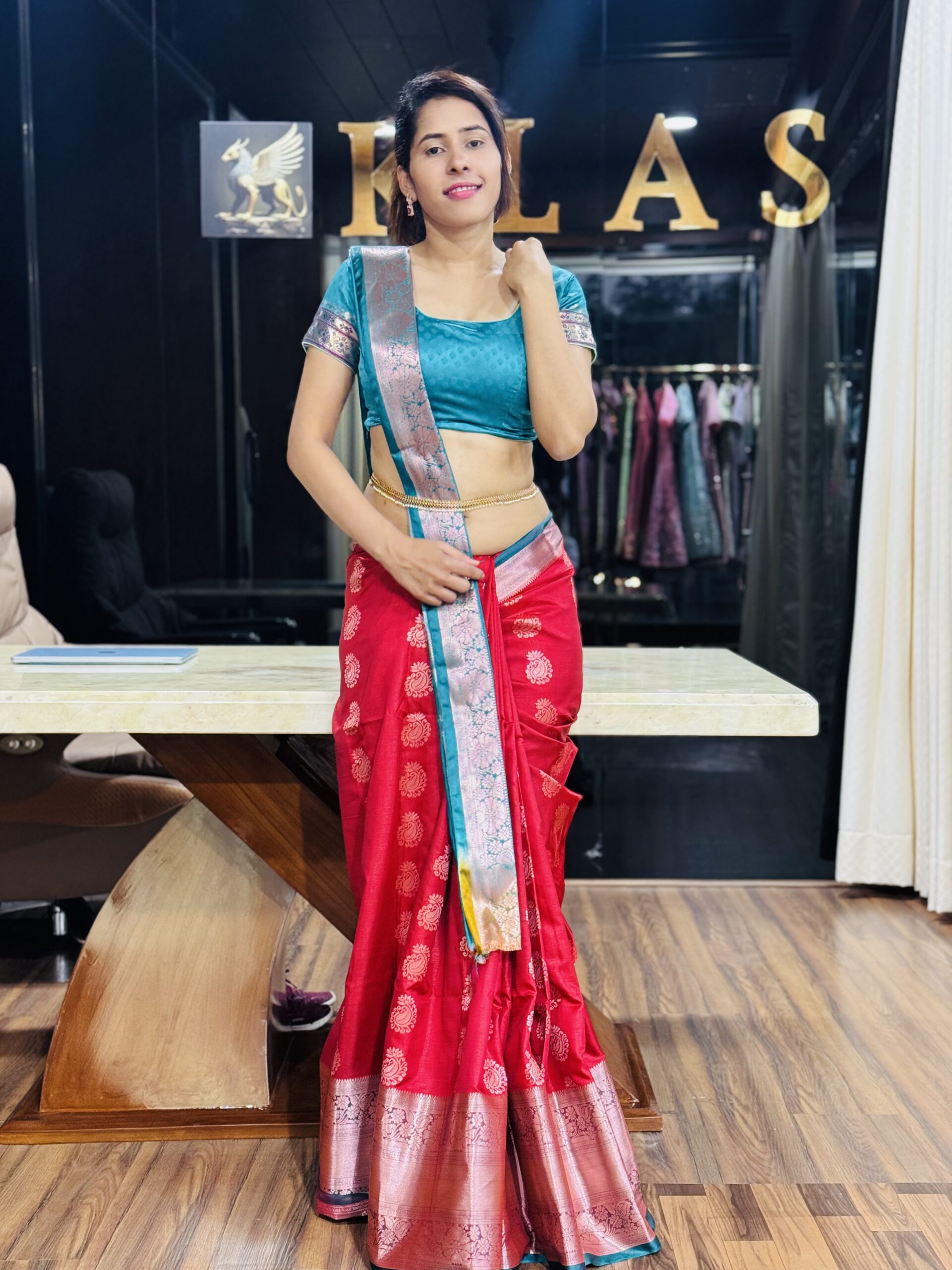 The rich texture and natural sheen of pure silk bring a timeless elegance that never goes out of style. Whether it’s an intimate gathering or a grand celebration, this saree lets you stand out with grace and confidence.