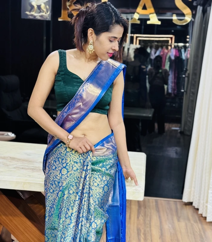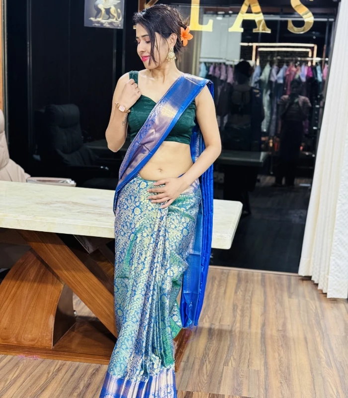 Royal Blue & Emerald Green Kanchipuram Silk Saree