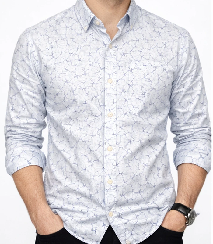 Upgrade your everyday style with this light blue printed casual shirt, designed for a clean modern look and all-day comfort. Crafted from soft breathable cotton, it features a subtle abstract vein pattern, full sleeves, and a smart collar — perfect for office, outings, or casual evenings.
